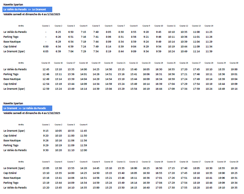 Une navette gratuite fera des allers/retours pendant tout le weekend afin d’assurer la liaison entre le festival spartan et les différents parkings.